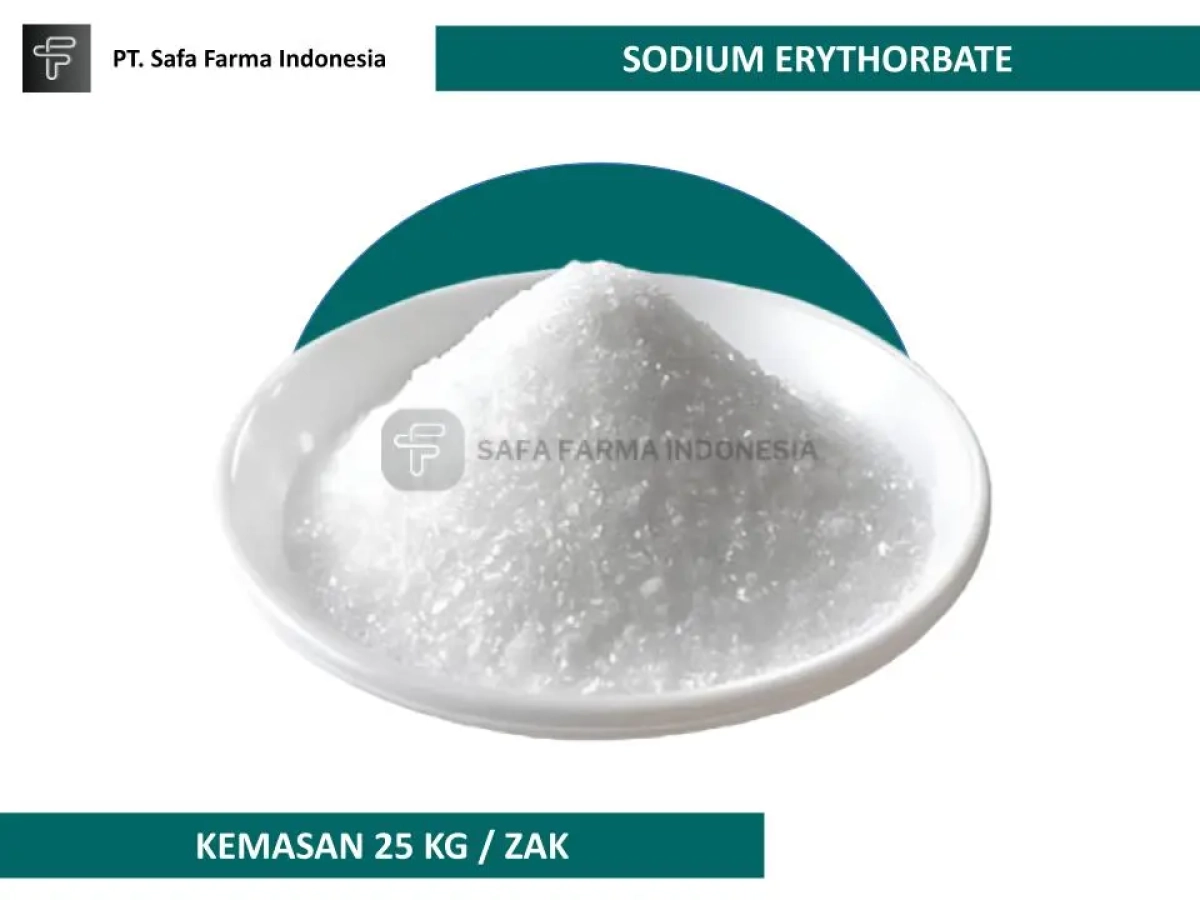 Sodium Erythorbate adalah garam natrium dari asam eritrobat yang digunakan sebagai antioksidan dalam industri makanan dan minuman. Fungsinya adalah mencegah oksidasi yang dapat menyebabkan perubahan warna, rasa, dan tekstur pada produk pangan. Sodium Erythorbate banyak digunakan dalam produk daging olahan, minuman, makanan kaleng, dan produk bakery.